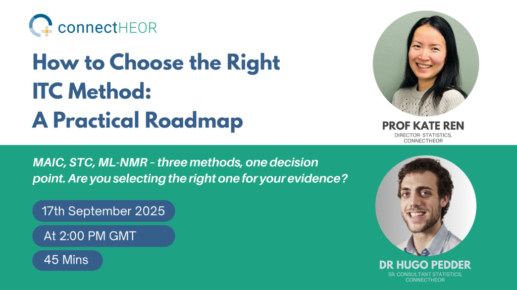 Kate spearheads Statistics and Evidence Synthesis at ConnectHEOR. She has more than 10 years of experience in conducting statistical analysis in HTA. Kate has PhD in Probability and Statistics specialising in Bayesian methods in clinical trial design.
